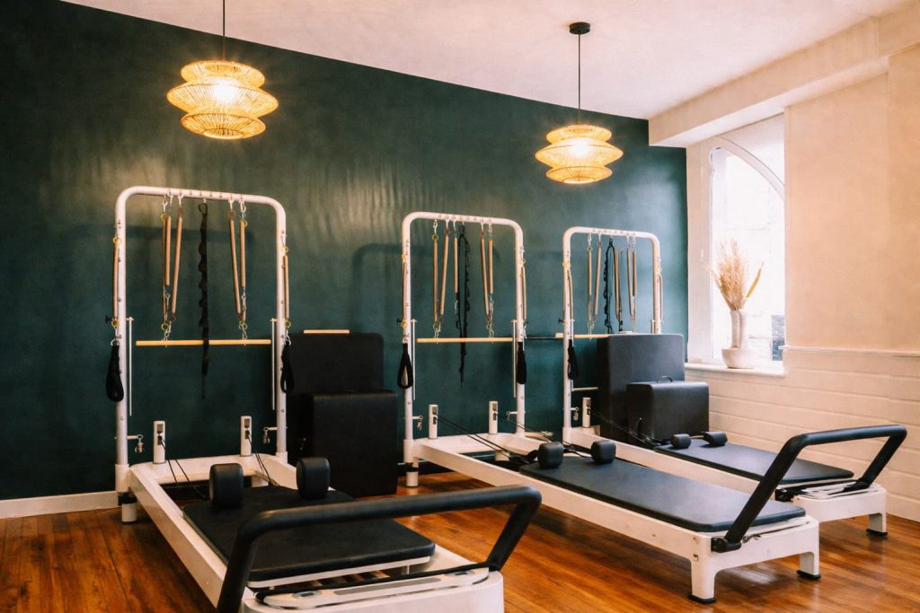 Avec une salle entièrement destinée à la pratique équipée de chauffages infrarouge pour tester les cours de Hot, des grands vestiaires avec des douches, de machines pilates Reformer avec Tour, un espace détente.